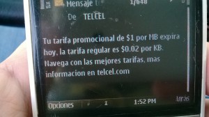 … y así, desde aquí he tenido muchísimo cuidado en mi navegación desde mi celular cuando ando en la calle, y cada vez que alguien me comentaba sobre su saldo, le decía que ahora el costo es 20 veces más caro.
